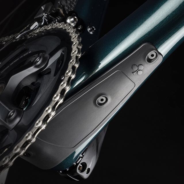 A G3x está equipada com dois protetores de lama debaixo do eixo pedaleiro e um protetor de corrente na escora traseira.