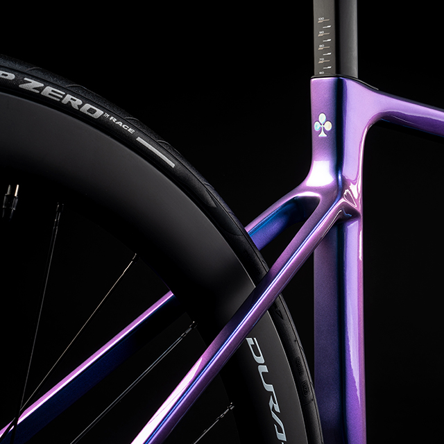 A V4Rs possui laminações de carbono peculiares, projetadas e testadas com particular atenção às áreas do quadro mais sujeitas a tensão. A potência de pedalada é transmitida ao quadro de forma imediata e eficaz, destacando-se mais do que em qualquer outra bicicleta no World Tour.